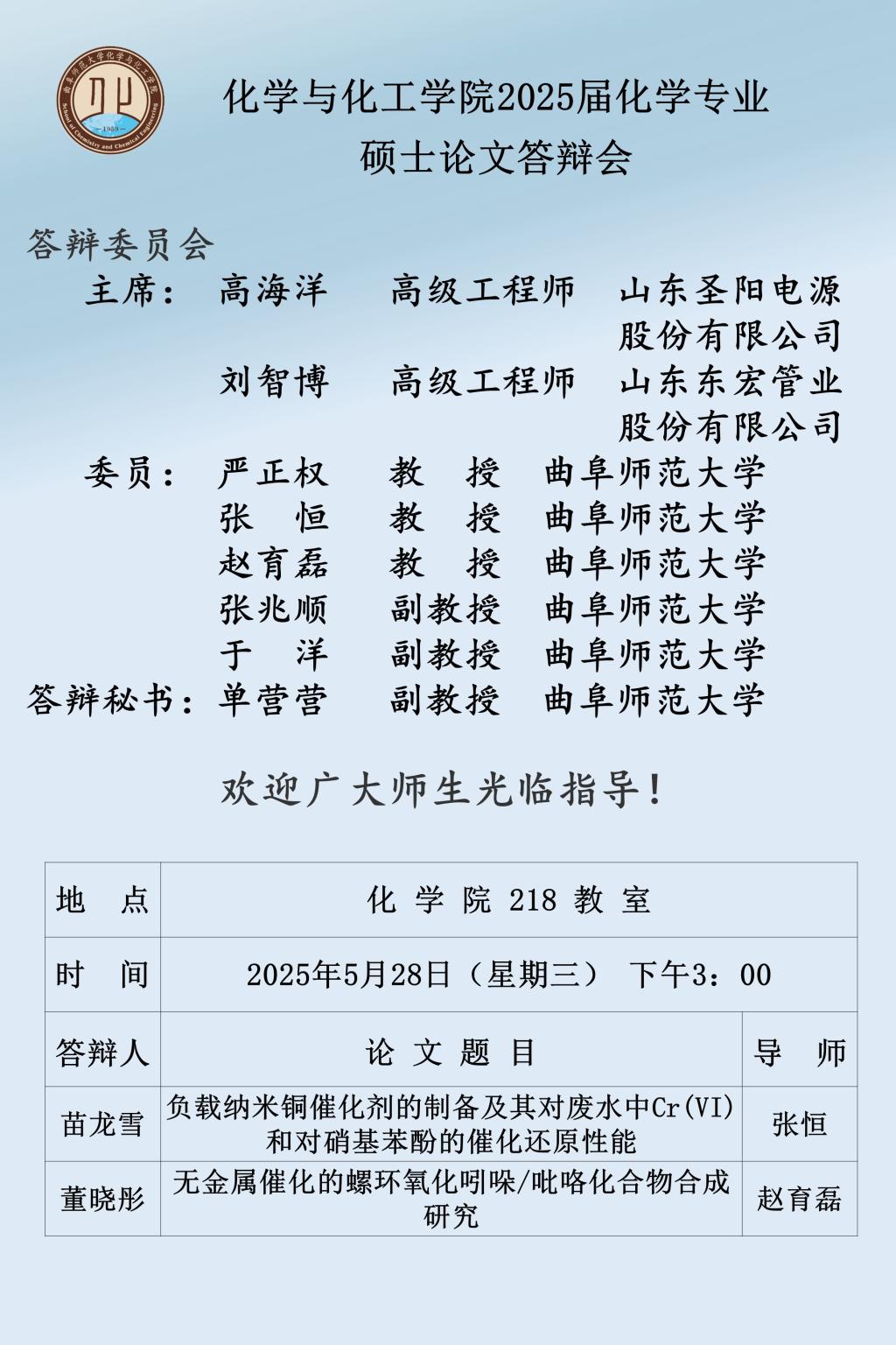 【5月28日】2025届硕士论文答辩会公告
