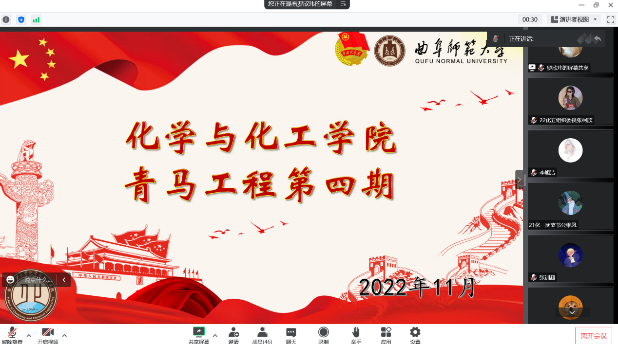 于线上开展2022-2023学年 “青马工程”大学生骨干培训班第四讲。本次培训由北京赛车