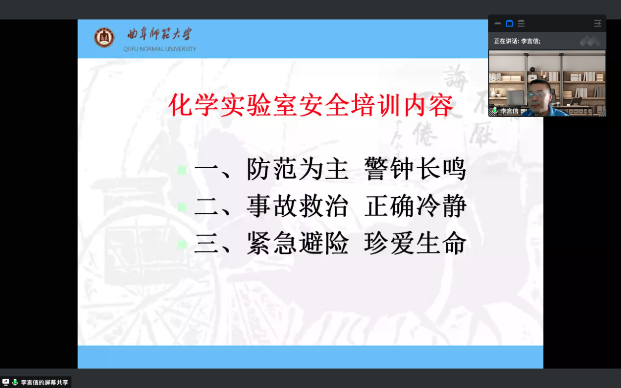 于线上开展实验室安全教育讲座。本次会议由实验中心主任李言信担任主讲,2021级研究生田子主持。北京赛车