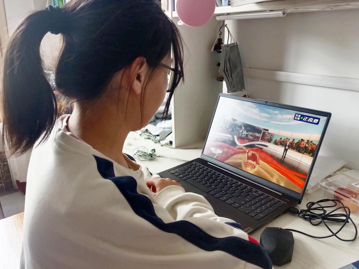 图为同学进行线上自主观看学习