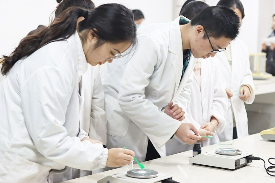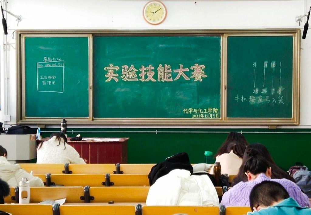 本次比赛分为初赛和复赛两个阶段。初赛于12月5日在化学院院楼举行,比赛以笔试答题的形式进行选拔,最终十名同学进入复赛。复赛于12月11日下午14:30在实验中心B411教室举行,由分析教研室张淑芳、纪仲胤担任评委老师。参加比赛的十名选手有条不紊地开始本次实验。身着实验服的他们,耐心细致地进行着实验操作,每一种实验仪器的规范使用,都是实验成功的必要前提。与此同时,现场工作人员的准备工作也做得十分充足,为本次比赛圆满完成提供了良好的保证。两位评委老师的细致监督,保障了复赛的高质量进行。本着公平公正的原则,评委老师以实验操作、数据处理8:2的比例进行评分。最终,赵琳、郭晓慧、刘静获得一等奖,王子涵、王智童、梁婷婷获得二等奖,于心雨、宫雨双、孔令敏、李宏鹏获得三等奖。至此,本次实验技能大赛完美收官。
