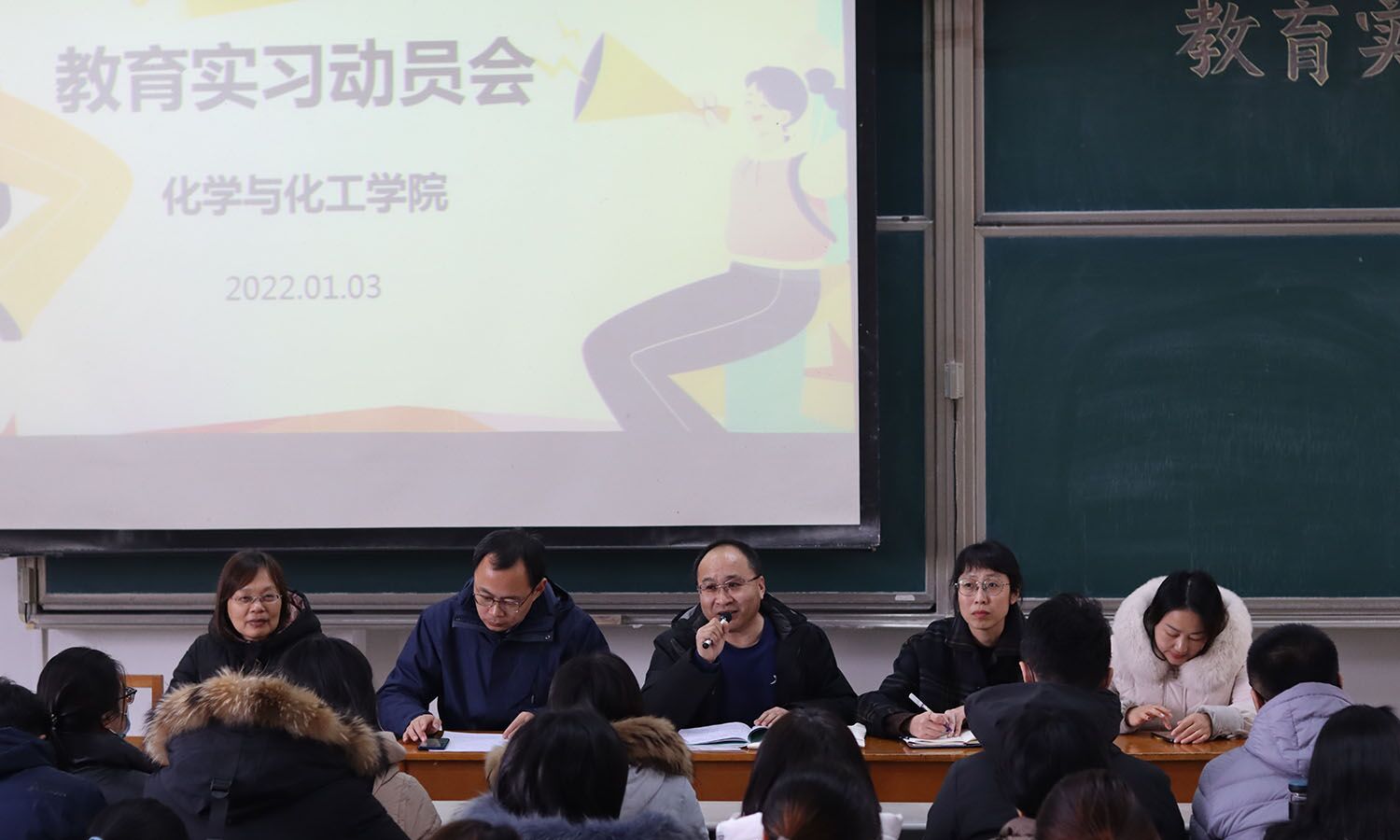 于综合楼406召开2019级师范生教育实习动员大会。学院副院长刘鹏,教法教研室主任姬广敏,2019级辅导员黄秉帅以及全体教育实习指导老师出席本次大会。会议由学院教学秘书胡蕾主持,2019级全体师范生参会。