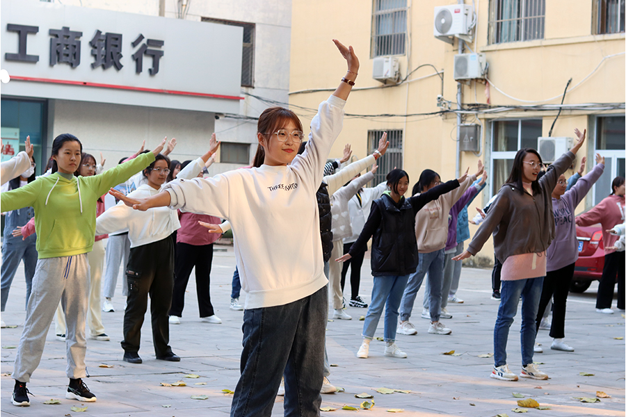 第八届广场舞大赛,10月24日下午,2020级、2021级各班在校园各个角落,如火如荼地开展广场舞排练。