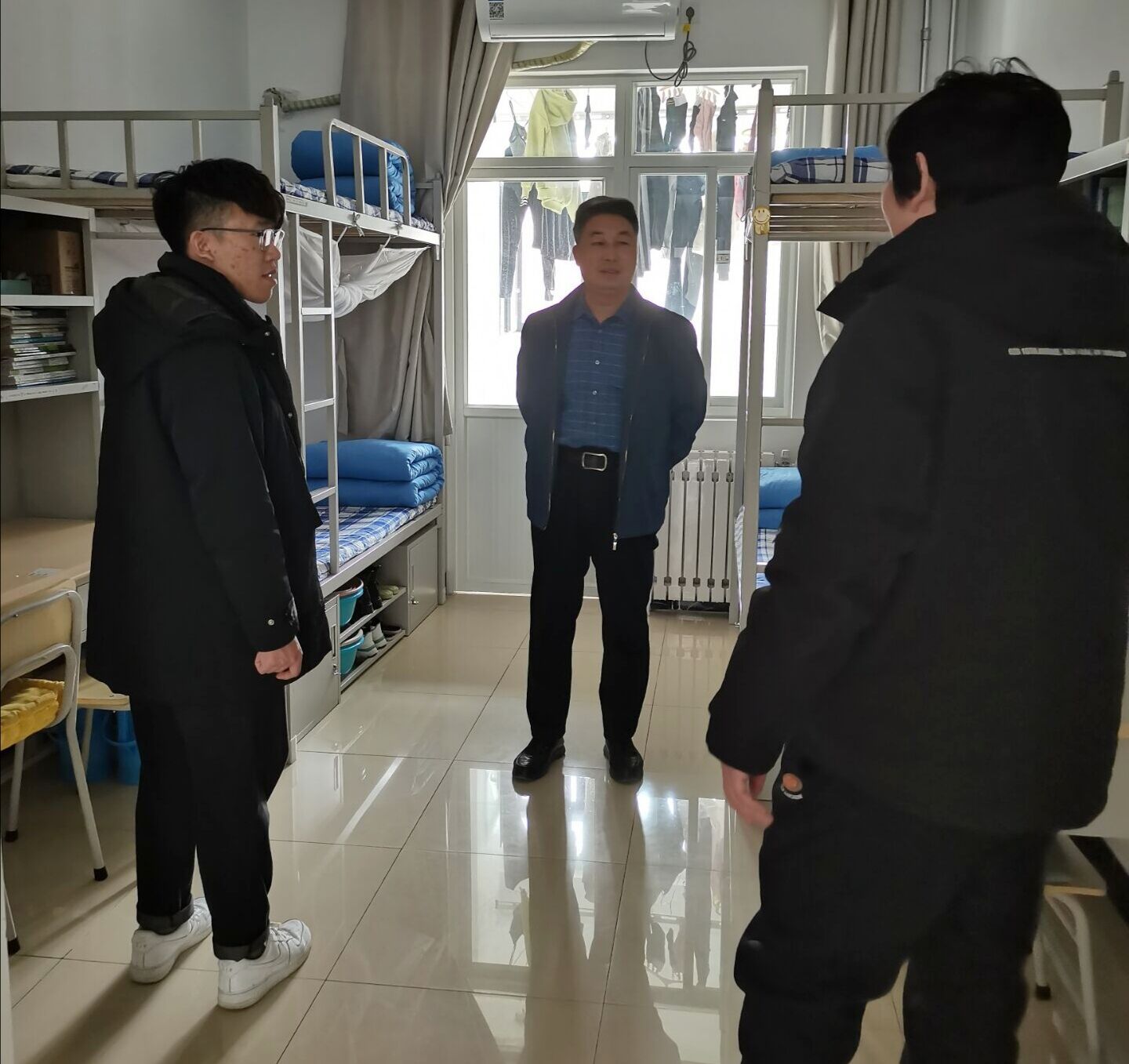 检查过程中,老师们与学生亲切交流,全面了解他们的思想、生活和学习情况,并提醒同学们正确使用插座、插排等电器,增强安全防范意识,注意防火防盗,保持宿舍卫生整洁。师生们还就宿舍文化建设进行了交流。对于检查中发现的一些问题,老师们细心指出并提出整改意见。经过检查,大部分宿舍干净整洁,卫生保持良好,没有使用违章电器的现象。