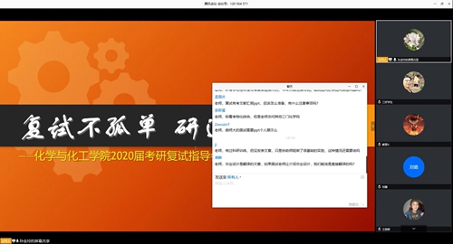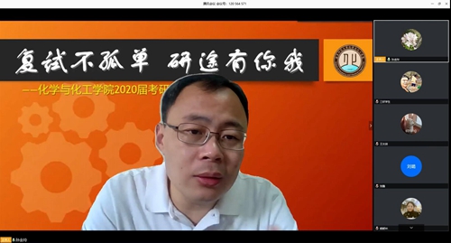 “复试不孤单,研途有你我”——2020届考研复试指导会通过腾讯会议形式线上进行。复试指导会由化院团委书记、2016级辅导员孙金玲主持,特邀研究生招生办公室副主任刘宪伟、北京赛车