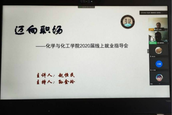 “迈向职场”——2020届线上就业指导会通过腾讯会议形式线上进行。就业指导会由化院团委书记、2016级辅导员孙金玲主持,特邀鲁南制药集团劳动人事部招聘经理、有机合成专业硕士赵恒民作为主讲老师,为2016级选择就业的同学们讲授就业指导课。