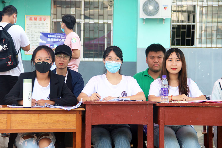 2020级迎新生工作有条不紊地进行。学院党委副书记毛永正,团委书记孙金玲,2018级辅导员冯德浩,2020级辅导员蒋君、毛艺霏莅临指导学生的迎新工作。