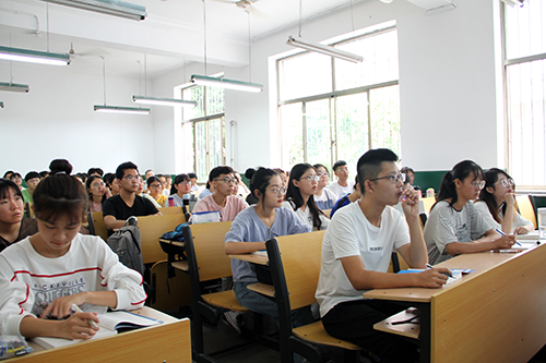 党委书记赵琪、院长尤进茂、副院长冯媛媛、党委副书记毛永正、团委书记孙金玲与化院学子共同聆听“开学第一课”。