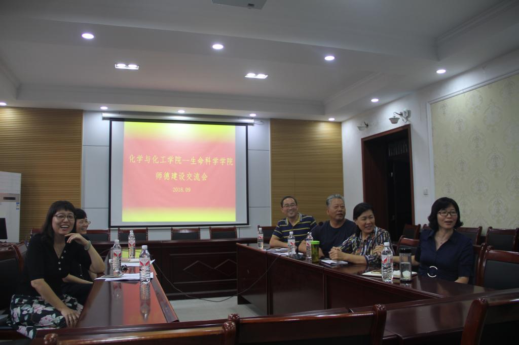 与生命科学学院在化学楼226会议室进行“师德教育”联谊座谈活动。交流座谈在化学分工会主席岳明波主持下进行,化学院和生科院副院长、分工会委员、师德标兵、师德先进个人以及两个学院50多位青年教师参加会议。