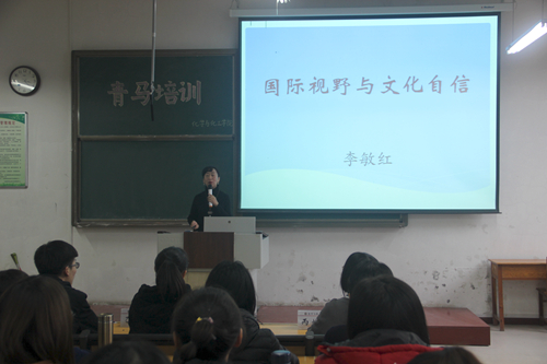 仪式结束后,李敏红老师做了题为《国际视野与文化自信》的首场报告。李老师以“国家需要什么样的人才”为切入点,从“国际视野”和“文化自信”两个方面,结合自身经历,向同学们阐释了“什么是人才以及如何将自己培养成人才。”深入浅出,带领学员们领略世界各国的文化特色以及当代中国的变化与速度。最后,李敏红老师勉励学员心胸要宽,知识要深厚,理想要宏大,百折不挠,用实际行动实现长远目标。李敏红老师的报告内涵丰富,精彩生动,学员仔细聆听,时时记录,报告在热烈掌声中圆满结束。