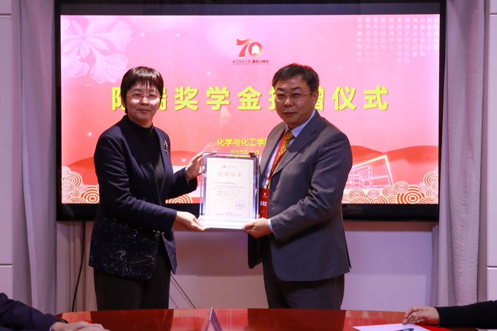 院长冯媛媛向孙波颁发捐赠证书,证书上的每一个字迹都凝聚着师生对校友反哺母校善举的敬意。