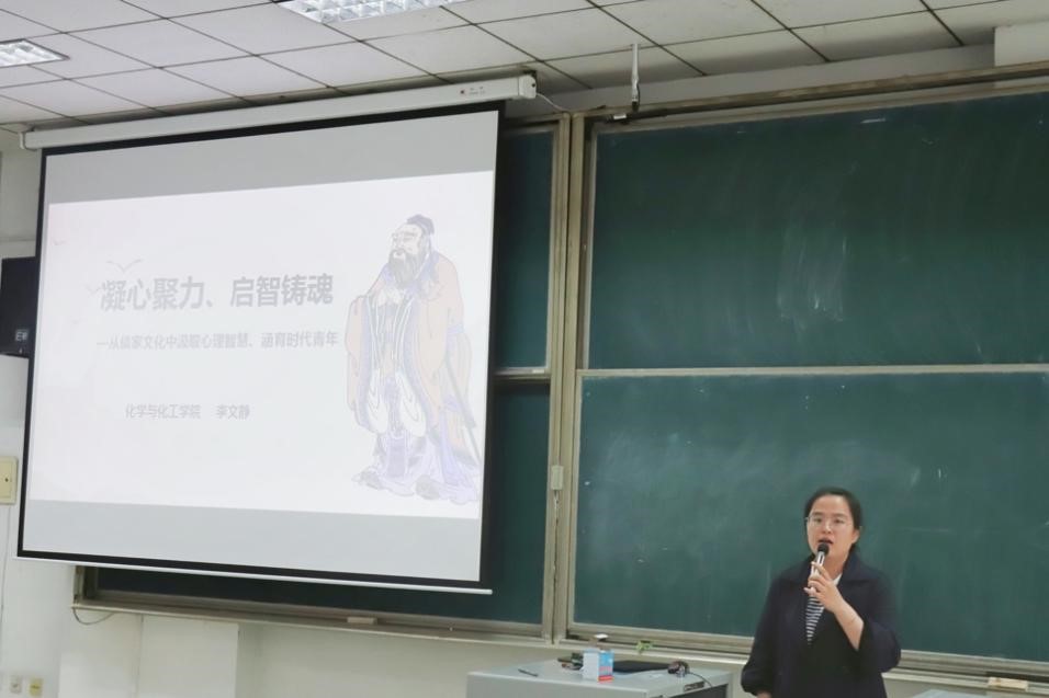 班会伊始,李文静以“凝心聚力、启智铸魂——从儒家文化中汲取心理智慧、涵育时代青年”为主题,运用实际案例绘声绘色地讲述了儒家文化涵养健康心态的积极意义和内在机理,以及当代大学生如何从儒家文化中汲取心理智慧,争做优秀时代青年。随后,学生干部孙荥从文化自信角度进行了理论宣讲,呼吁研究生要加强理论学习,推动中华优秀传统文化创造性转化、创新性发展,进而提高国家文化软实力,敦促我们要坚定文化自信、勇担青年使命。班会现场,同学们积极发言,热烈讨论,纷纷表示深受触动,受益颇多。